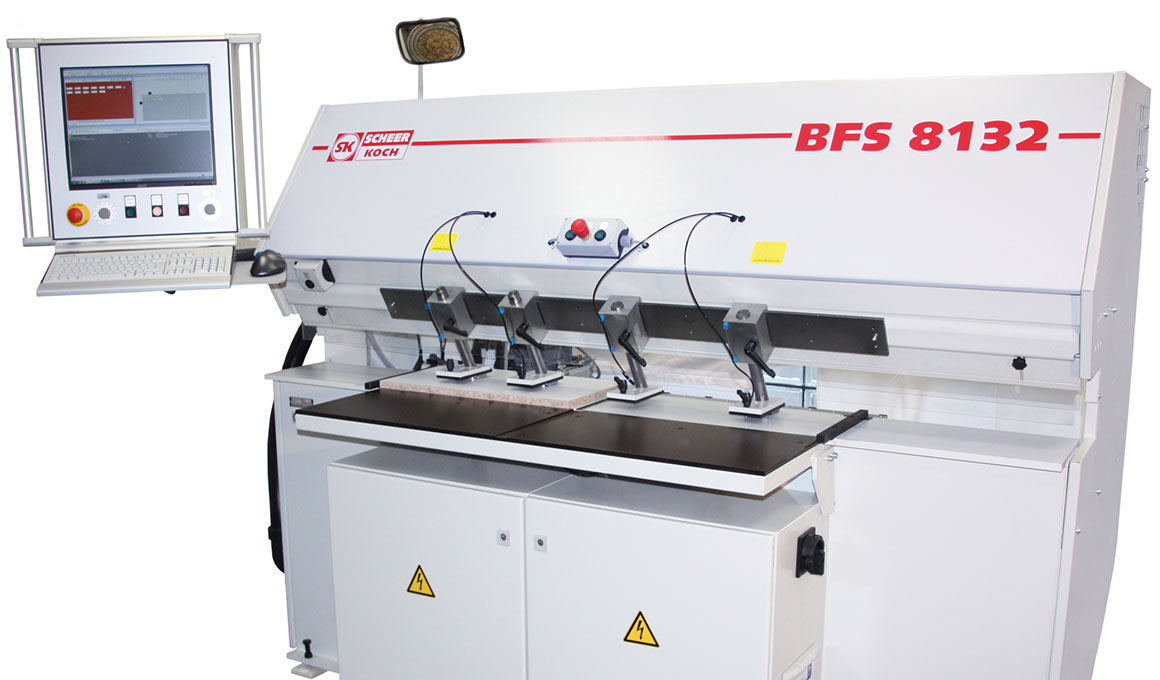 Mit 54 Dübeln pro Minute ist der BFS schneller als alle Vorgängermaschinen. Die spindelgeführte Z-Achse sorgt für volle Beweglichkeit in allen drei Ebenen, wobei die holzstaubabgedichteten Linearführungen das Absetzen von Spänen verhindern. Der Bohrsupport wird durch 1 Bohr - / Fräsmotor bereitgestellt, welcher von der Dübeleintreibstation unterstützt werden. Optional lassen sich weitere Bohrmotoren sowie Dübeleintreibstationen einbauen. Die getrennten Klappanschläge ermöglichen den Wechselbetrieb sowie den Sensorstart für verzögerungsfreies Arbeiten und erhöhte Produktivität.