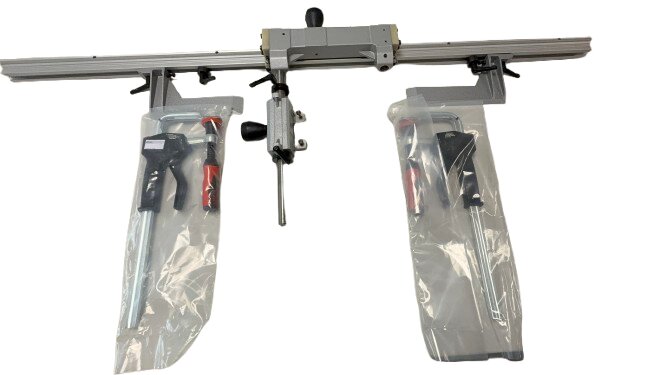 Das Treppenwangenfräsgerät TW 9 besteht aus einer stabilen Aluprofil-Schiene als Längsführung mit Support auf Gleitführung sowie Welle als Querführung.