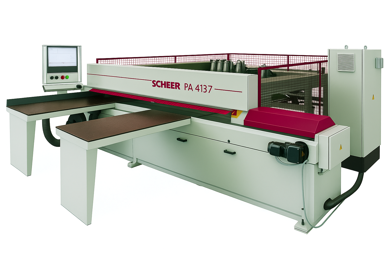 - 4250 mm Anschlagtiefe, 4200 mm Schnittlänge, 4200 mm Tischlänge